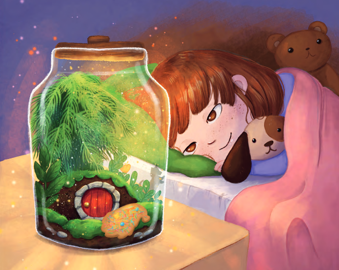 Die beiliegende Wichteltür lässt Kinderfantasien wachsen und schafft eine Verbindung zur Geschichte – so wird der Flaschengarten zur Bühne für eigene Abenteuer.