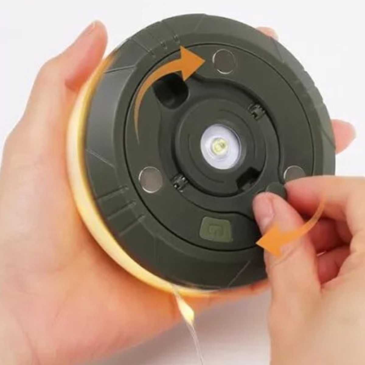 Auf den ersten Blick sieht sie aus wie eine ganz normale Campingleuchte. Aber warte – zieh am kleinen Haken und plötzlich entfaltet sich eine 10 Meter lange LED-Lichterkette! 🌟