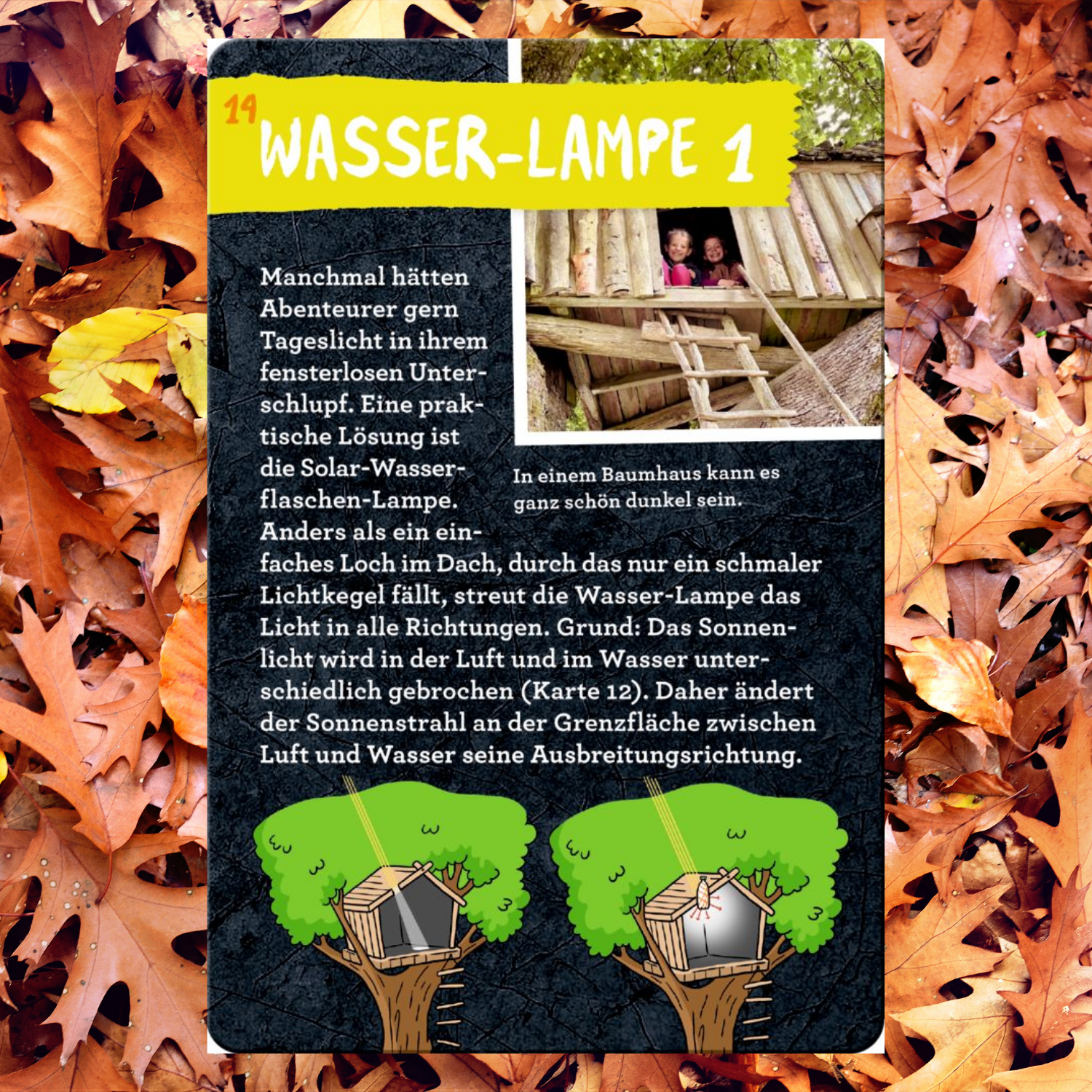Wenn Kinder die Welt draußen entdecken, wird die Natur zum Labor. Dieses Kartenset bringt spannende Experimente direkt in den Wald, auf die Wiese oder sogar in den eigenen Garten. Mit einfachen Anleitungen lernen Kinder, wie sie einen funktionierenden Kompass bauen, Sonnenstrahlen für einen Solarofen nutzen oder Wasser filtern können. Es ist nicht nur ein lehrreicher Spaß, sondern auch ein Moment, in dem Wissen lebendig wird. Die Karten sind so gestaltet, dass Kinder spielerisch lernen und mit jeder neuen Aktivität mehr Vertrauen in ihre Fähigkeiten gewinnen – perfekt für kleine Abenteurer:innen und wissbegierige Entdecker:innen.
