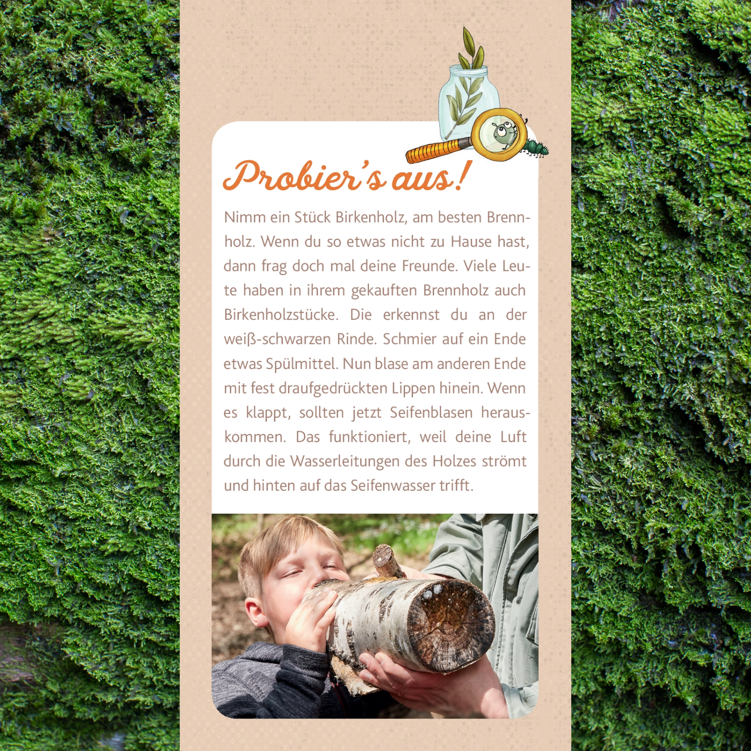Das Set besteht aus 40 liebevoll illustrierten Karten, die sowohl interessantes Sachwissen als auch praktische Experimente enthalten. Ob es darum geht, im Wald zu telefonieren, die natürliche Klimaanlage des Waldes zu finden oder herauszufinden, dass es dort sogar Kaugummi gibt – die Karten bieten vielfältige Anregungen für spannende Aktivitäten in der Natur.