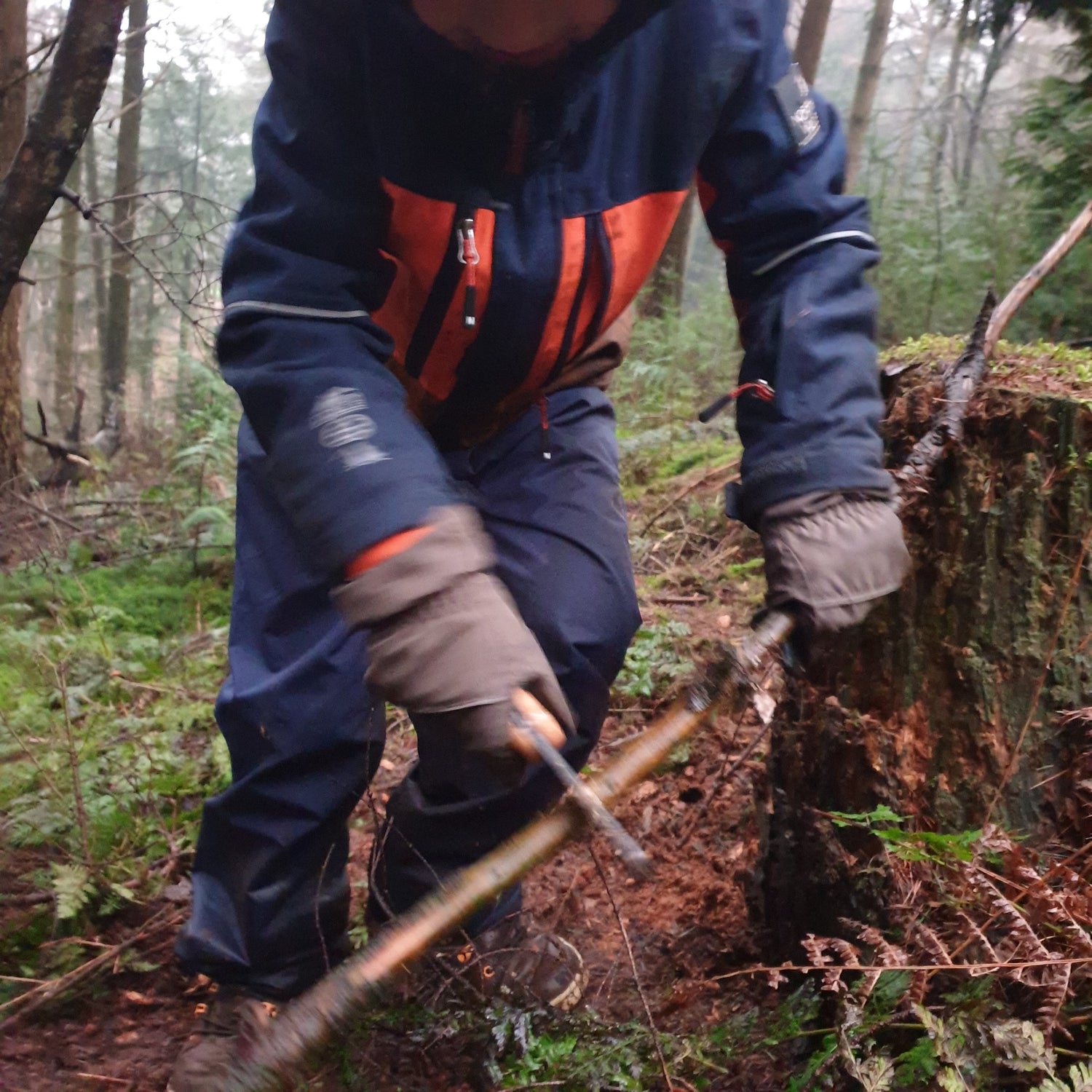 Die Säge macht das Durchtrennen von (toten) Ästen kinderleicht – und vor allem sicher! Sie ist leicht, liegt gut in der Hand und hat eine Klinge, die ordentlich Power hat, aber trotzdem kontrolliert bleibt. Damit können kleine Abenteurer:innen Holz für ihre Schnitzprojekte vorbereiten oder direkt größere Bauprojekte wie Unterschlüpfe oder Buden angehen.