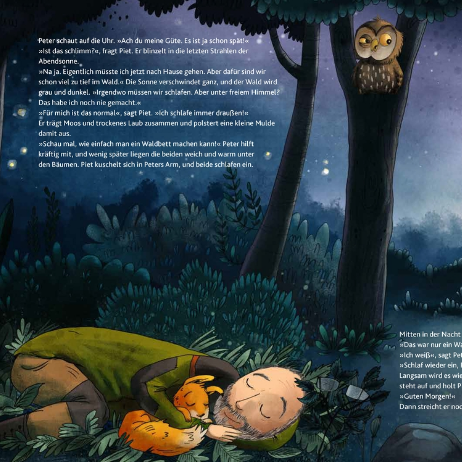 Piet fühlt sich allein im Wald, bis Förster Peter ihm zeigt, dass auch Bäume in Familien leben. Neugierig und mutig begibt sich Piet auf die Suche nach den Baumkindern und lernt dabei viel über Zusammenhalt und Freundschaft.