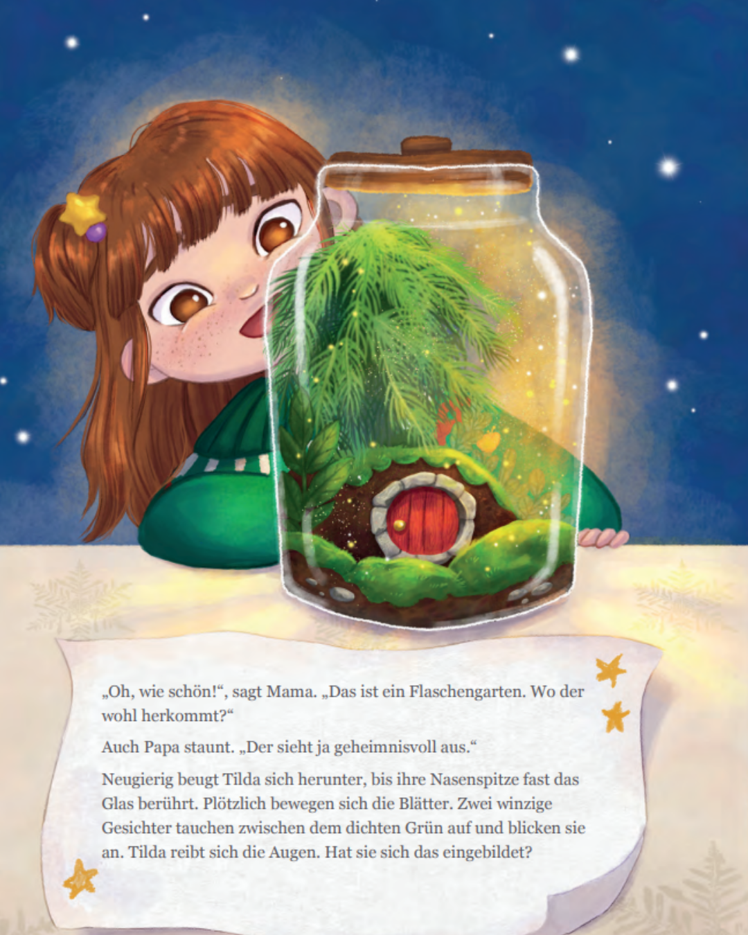 In der bezaubernden Geschichte „Wichtelzauber im Flaschengarten“ bekommt die 5-jährige Tilda ein geheimnisvolles Paket – und schwupps: landet sie mitten im funkelnden Wichtelwald! 🧙🌲 Dort soll in der Nacht der Wünsche jeder Wichtel seinen Herzenswunsch zu den Sternen schicken. Doch diesmal geht alles schief – und Tilda braucht all ihren Mut, um zu helfen …
